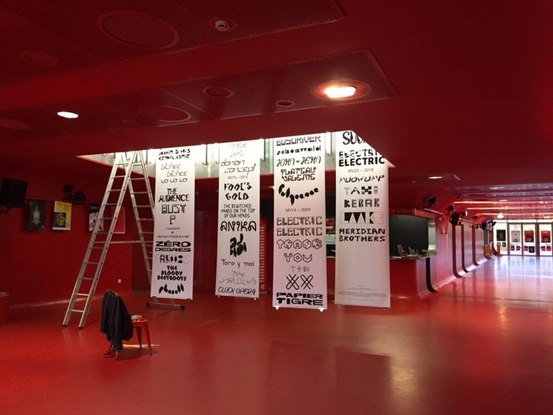 Conception et réalisation d'un "wall of fame" constitué de tous les noms des artites passés par Nancy à l'invitation du festival des Musiques Volantes, depuis 2003. Chaque lettrage est réalisé par un étudiant de l'option (Année 2).